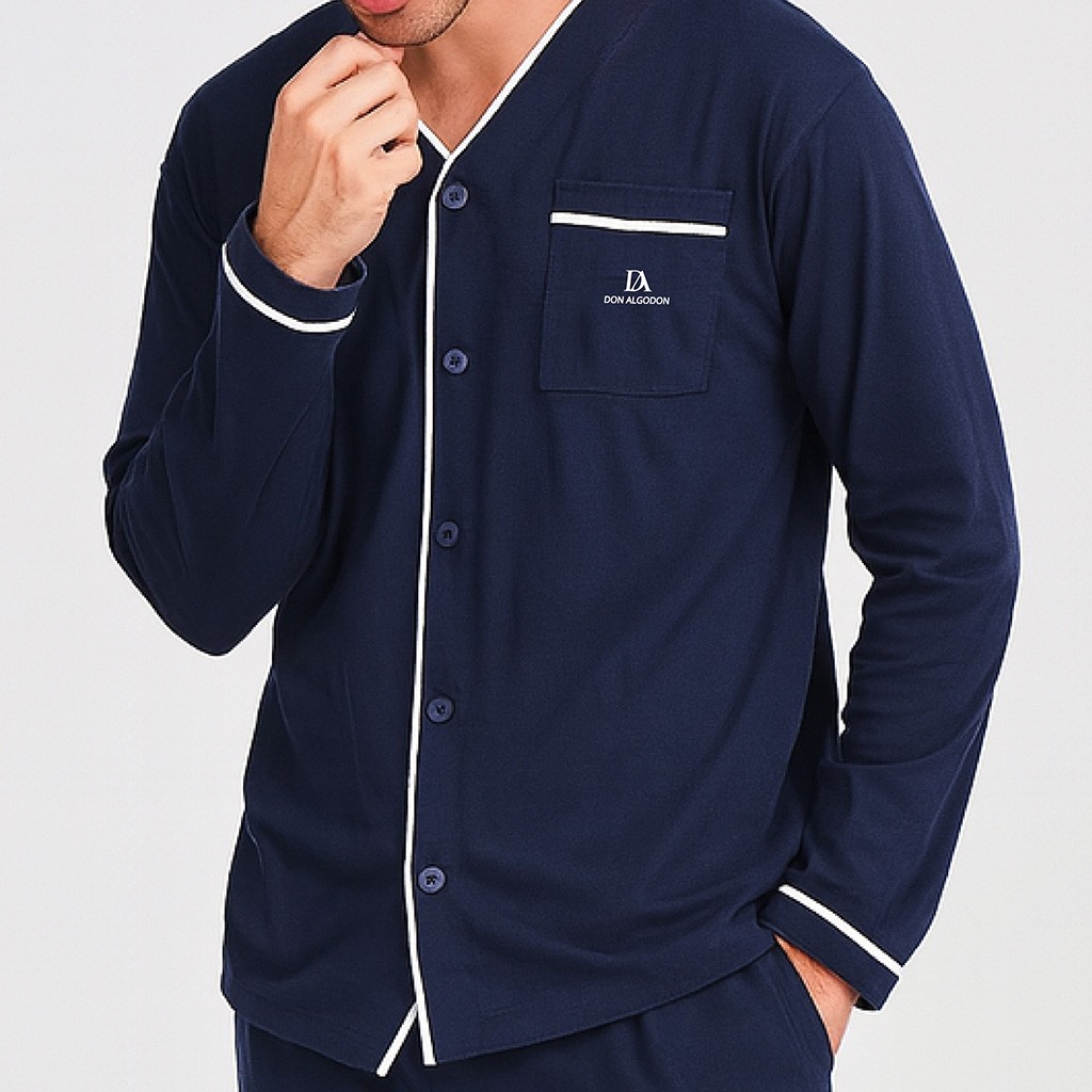 Pijama de hombre Don Algodón confeccionado en algodón 100%, diseñado para ofrecer comodidad, suavidad y un estilo clásico en el descanso.